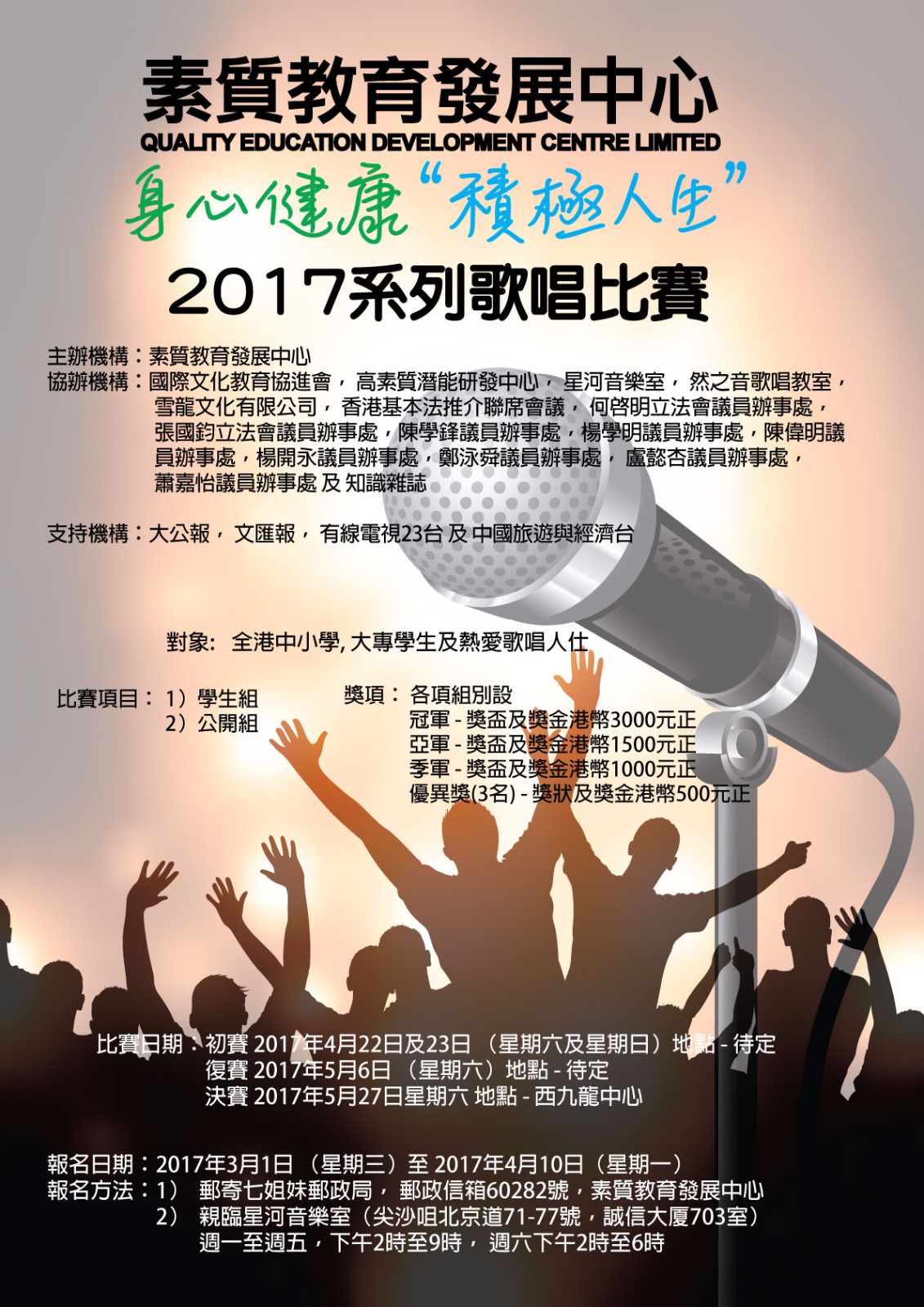 初賽日期 : 2017年4月22日及23日 (星期六及日)